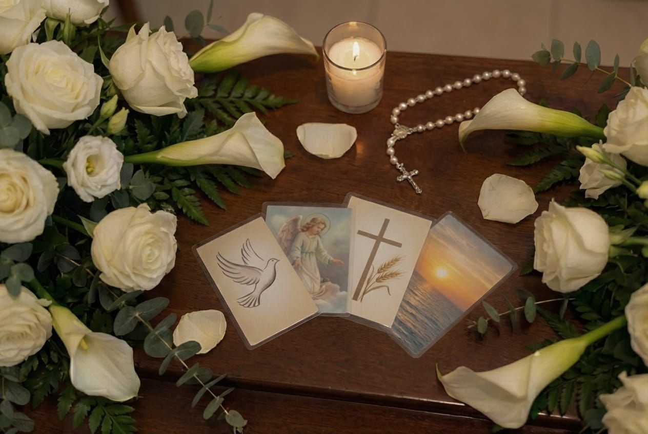 Per completare l’allestimento, è possibile richiedere addobbi floreali e accessori di arte funeraria. Ogni elemento viene selezionato per creare un ambiente sobrio e rispettoso, in linea con il contesto della cerimonia.